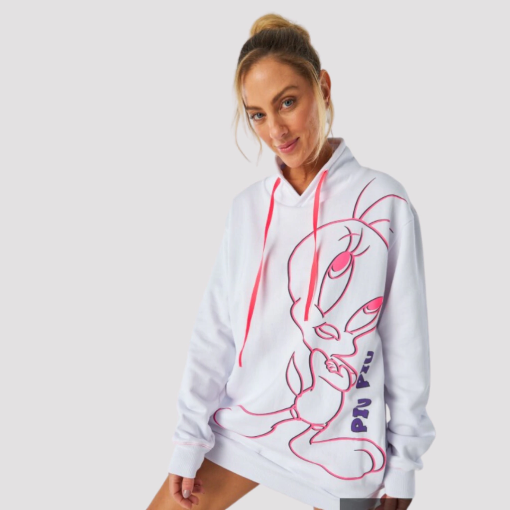 Que a Coala é fã número um dos Looney Tunes todos já sabem, e não tinha como não ressurgir com os nossos queridinhos. Em mais uma coleção atemporal, eles estão presentes com inspirações e aspirações únicas vieram mais uma vez conquistar o coração de todos! Moletom super quentinho, confortável, versátil e perfeito para as épocas mais frias do ano. Cor branco. Possui silk neon do Piu Piu, gorgorão na gola e bolsos laterais.